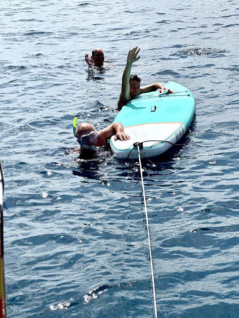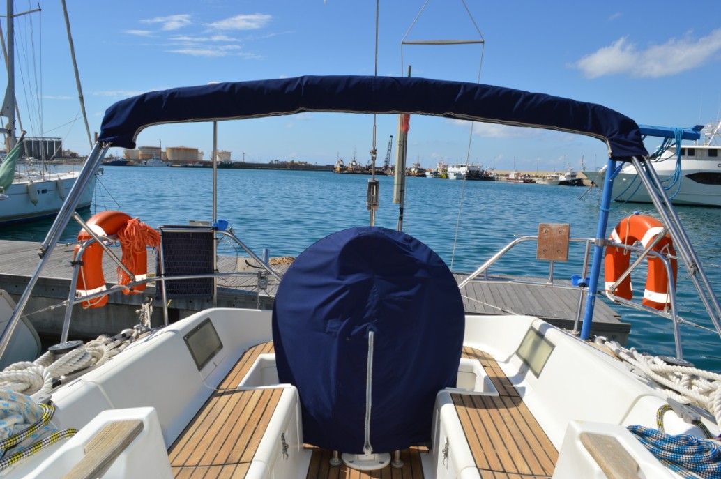 La sopracoperta è dotata di ampio pozzetto ombreggiato dal tendalino,gli spazi prendisole sui lati e a prua garantiscono un elevato comfort a bordo. Molto apprezzata la spiaggetta di poppa che rende l’accesso e la risalita dal mare molto facile e sicuro. Dotata anche di doccia con acqua calda/fredda.