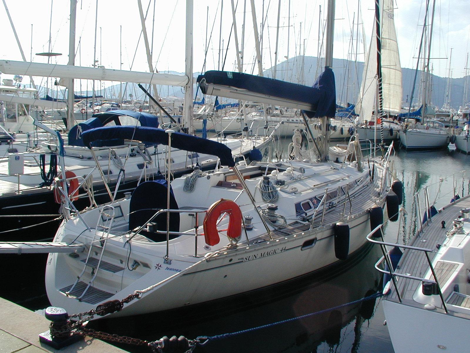 Un’imbarcazione a vela del cantiere Jenneau pensata ensata per la crociera è comoda e fruibile, ma anche solida e sicura. Con armo a sloop è dotata di una randa e un genoa. rollabile. che sviluppano quasi 120 mq. Facile da manovrare con la timoneria assistita da un pilota automatico della Raymarine e con i 6 winch tutti nel pozzetto di manovra