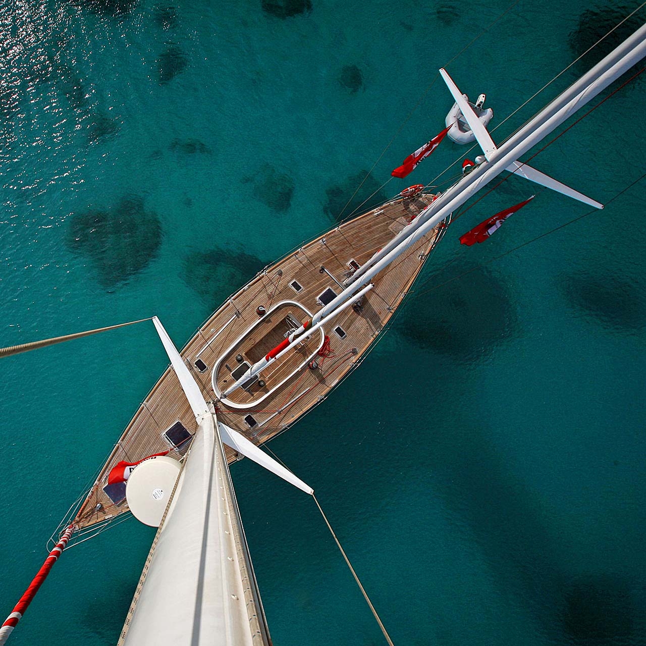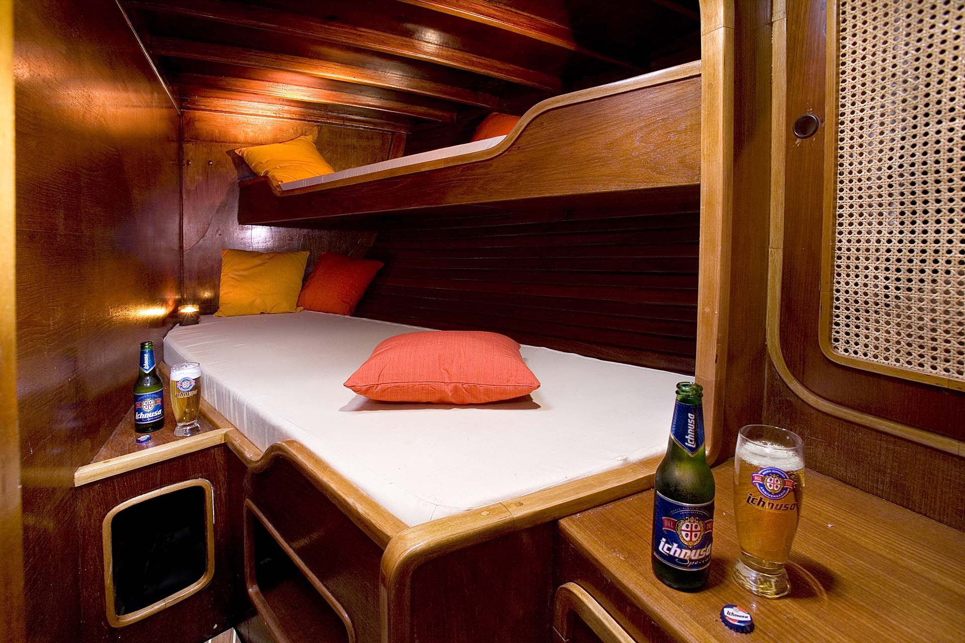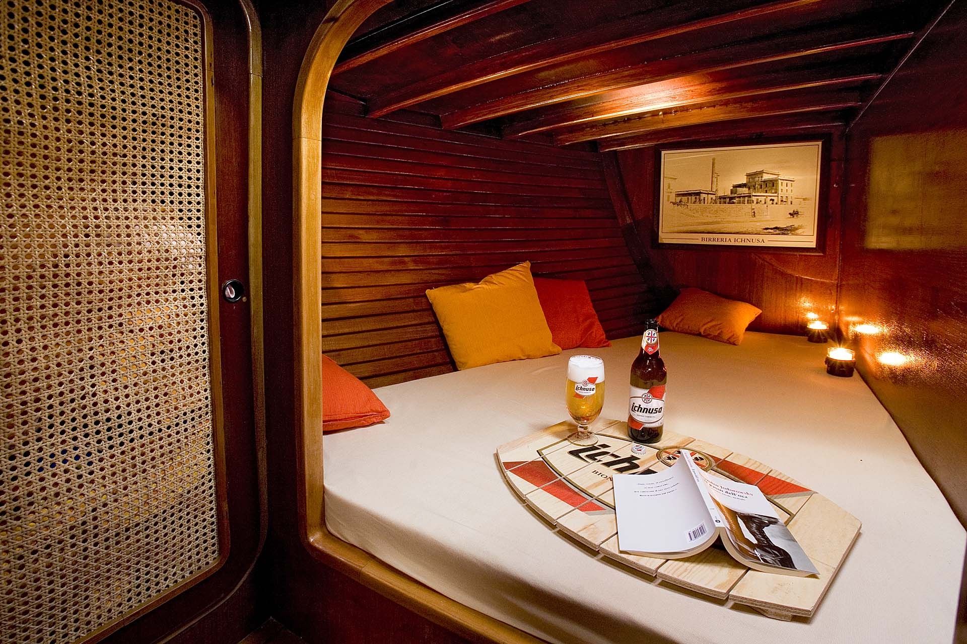 Gli spazi sopracoperta raccontano la grande anima di questa barca e del suo comandante. Offre spazi accoglienti, è adatta a far viaggare anche equipaggi più numerosi ma l’abbiamo riservata solo a 6 persone a settimana. Completamente brandizzata, bella da vivere e super green, rispettosa dell’ambiente e di chi lo abita.