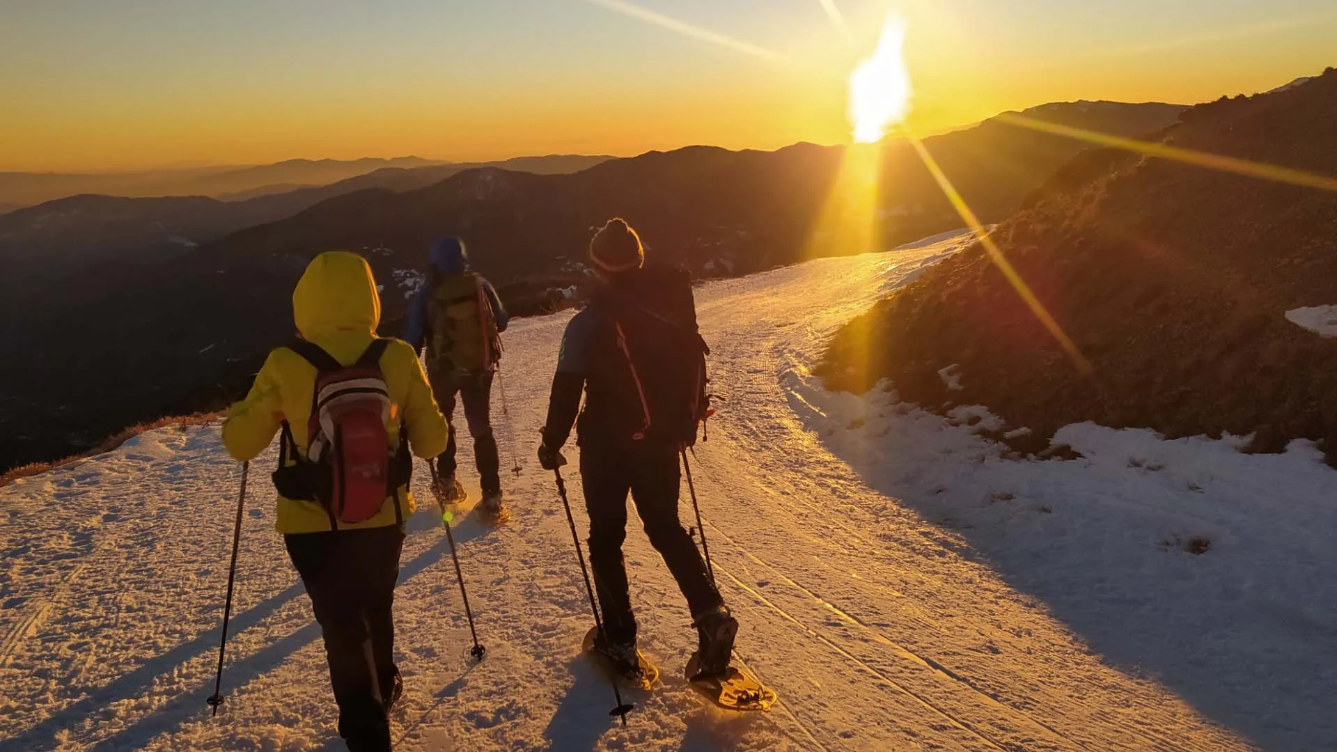 In the afternoon, we put our snowshoes back on fora sunset hike, one of the most evocative moments of the weekend.
