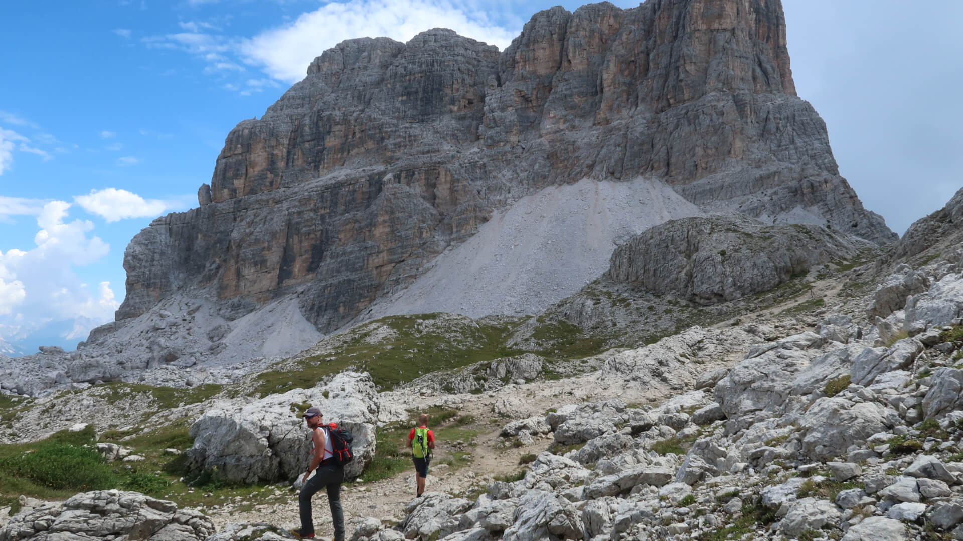 Una bella ricarica di energia con una ricca colazione in hotel e partiamo da Alleghe in auto direzione Passo Falzarego. Inizia la nostra settimana di trekking tra Veneto e Trentino con un’escursione circolare e paesaggi pazzeschi sulle 5 Torri di Cortina, sul Gruppo delle Tofane, sul Lagazuoi e su molte altre cime Dolomitiche che cingono la Conca Ampezzana. Inizieremo poi a risalire le rocce scure della Croda Negra, per raggiungerne la cima di 2500 m, punto più alto di giornata. Scenderemo poi verso Forcella Averau verso le Cinque Torri e il famoso Rifugio Scoiattoli. Tappa d'obbligo al Lago di Bai de Dones, piccolo specchio d’acqua in cui si riflette la Tofana di Rozes, e la cui fama è legata ad antiche leggende di creature delle acque dotate di poteri magici, le anguane. In questa prima giornata abbiamo scaldato i muscoli e iniziato a riempirci gli occhi di Dolomiti!