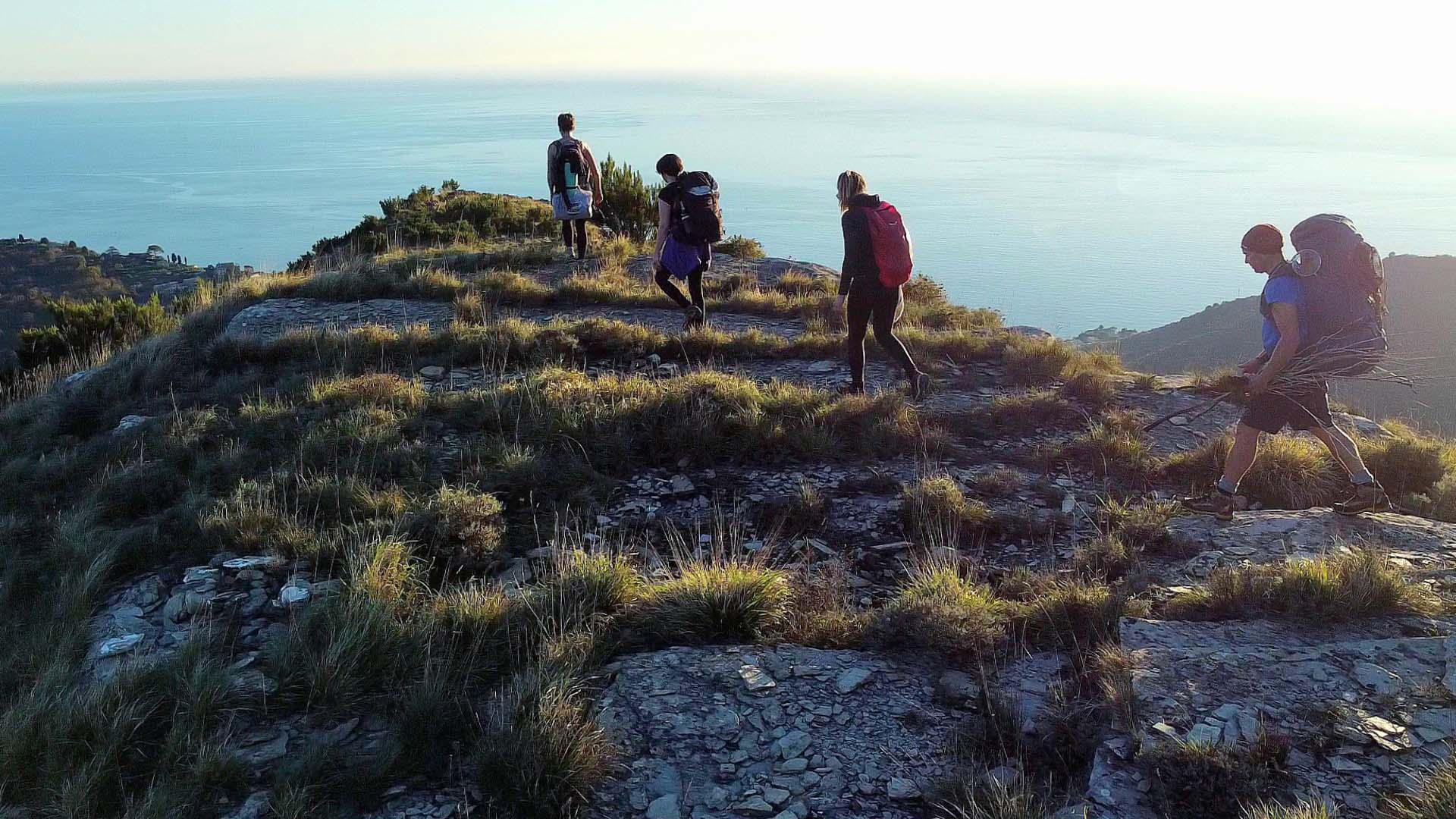 Iniziamo quindi a salire lungo le creuze, antiche mulattiere, che portano dalla costa verso le alture, trasformandosi pian piano in sentieri. Guadagnata quota, la vista spazia da Capo Mele alle Cinque Terre e talvolta fino alla Corsica. Continuiamo a camminare tra la flora mediterranea ed i lecci secolari, fino a raggiungere il pianoro dove posizioniamo le nostre tende: è tempo di rimboccarsi le maniche e insieme alle nostre guide costruire il forno per cucinare. Con uno chef d'altura impariamo a preparare alcuni dei piatti della tradizione genovese. Durante la cena sotto le stelle, ci racconteremo storie antiche e curiosità di vita locale davanti al fuoco, prima di addormentarci.
