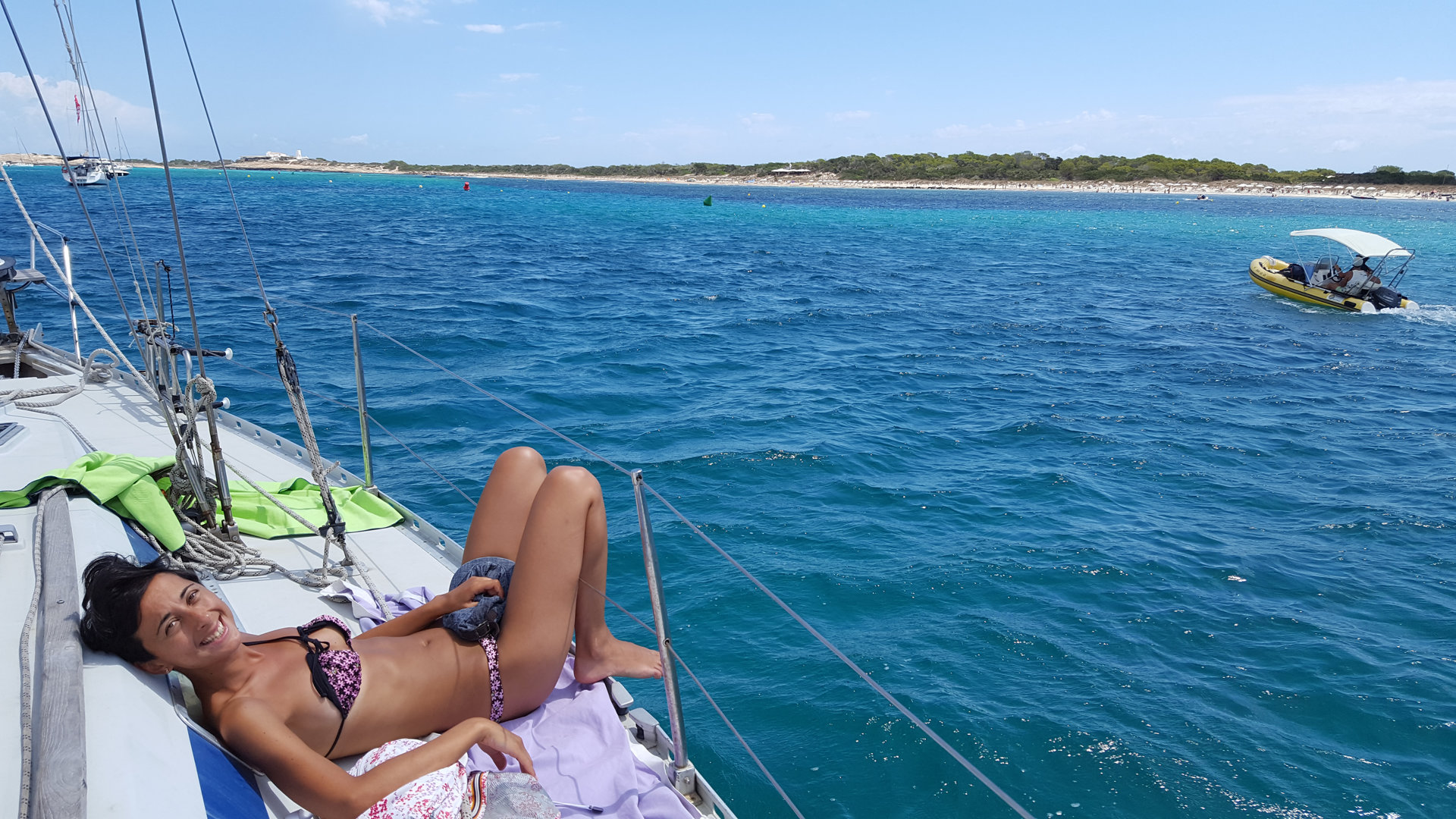 Navighiamo lungo la costa sud di Ibiza e ci fermiamo tra Es Cavallet e Ses Salines, dentro l’area protetta del Parco Naturale di Ses Salines, per un bagno trasparente e un pranzo con i piedi quasi nell’acqua. Poi puntiamo la prua verso Formentera, entrando nel tratto di mare più iconico della vacanza in barca a vela alle Baleari: S’Espalmador e Ses Illetes tra sabbia chiara, fondali bassi e sfumature turchesi. Qui il tempo rallenta davvero: tuffi, snorkeling, un aperitivo al tramonto e notte in rada sotto le stelle.