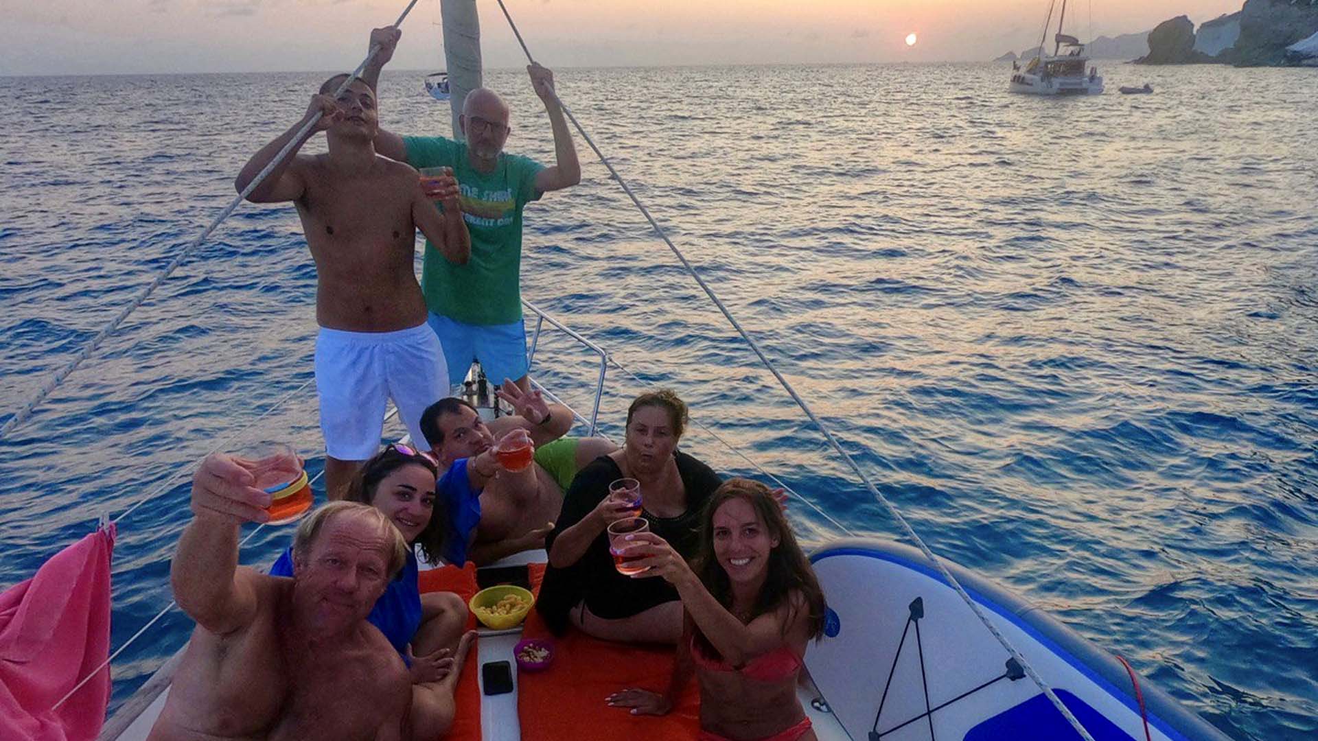 Risveglio a Nettuno, colazione tutti insieme a bordo e ultima foto di gruppo. Finisce questa vacanza in barca con un ritmo lento e a contatto con il mare.