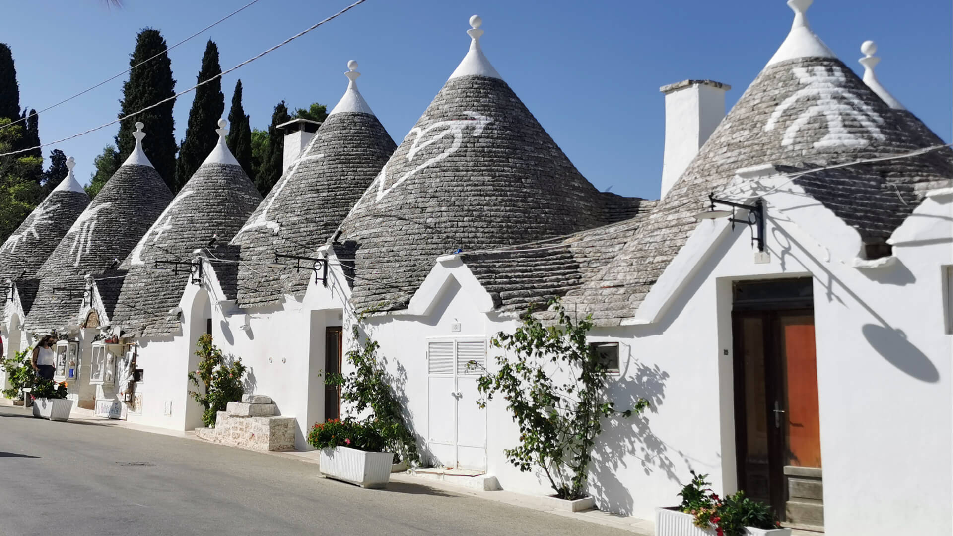 Proseguiamo verso la Valle d'Itria, cuore rurale della regione. Qui la bici diventa il mezzo perfetto per immergerci nel silenzio della campagna, tra masserie e vigneti. Entriamo nel paesaggio fiabesco dei trulli visitando Alberobello, sito UNESCO famoso per il Rione Monti. Pedaliamo tra tetti conici che sembrano spuntare dalla terra rossa. Raggiungiamo poi Locorotondo, uno dei borghi più belli d’Italia dove il bianco la fa da padrone. Il candore delle case è così abbagliante da farci chiudere gli occhi, ma riapriamo subito con in mano un calice di vino (anch'esso bianco), accompagnato da qualche ottimo tarallo tipico. Proseguiamo l'avventura, in mezzo alla campagna, dove il suono delle cicale si fa assordare e festeggia l'estate. La Puglia non la stiamo solo visitando, la sentiamo sulla pelle, la stiamo respirando. Nel pomeriggio arriviamo a Martina Franca, elegante e barocca, dove ci sentiremo dei Signori tra i palazzi nobiliari al cospetto della Basilica di San Martino.