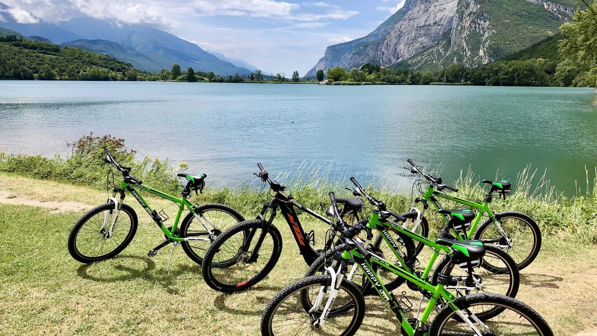 Oggi si pedala! In fase di prenotazione potrai scegliere tra noleggio bici muscolare o noleggio e-bike. Partiamo alla volta del Lago di Toblino. Il percorso è quasi interamente su ciclabile in assoluta sicurezza: siamo sulla ciclabile del Fiume Sarca. Lungo in tragitto passeremo il centro storico di Arco con il suo castello a strapiombo, la centrale elettrica di Fies, un luogo dell'archeologia industriale che oggi rivive grazie all'arte contemporanea ed il paesaggio lunare delle Marocche di Dro, la frana più grande dell'intero arco Alpino. Arrivati al Lago di Toblino, sosta alla caffetteria del castello. Prima di rientrare una fermata per un calice di vino locale è d'obbligo al Bike & Wine Bar a Dro, immerso nei vigneti. Facile rientro in leggera discesa ed eccoci a Riva!