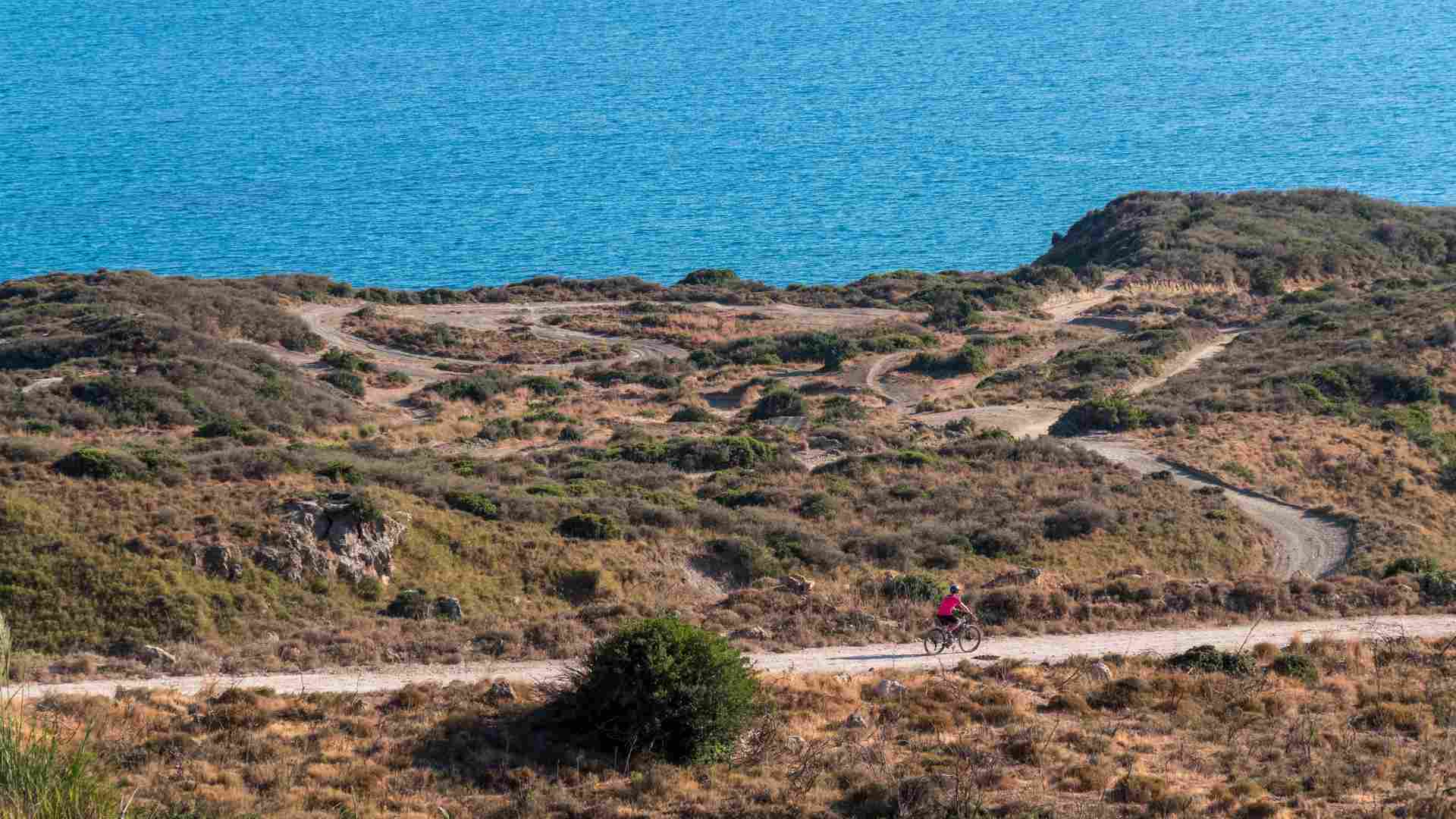 Anche oggi pedaliamo verso sud, su un percorso panoramico fino al borgo di Keri, tra uliveti e scorci sul mare cristallino. Durante il percorso, vale la pena fare una sosta per visitare la suggestiva Cameo Island, collegata da un pontile in legno, luogo perfetto per una pausa fotografica o un tuffo nelle sue acque cristalline. Da Limni Keri possibilità di noleggiare un'imbarcazione per visitare Marathònissi, l’isola delle tartarughe: grotte marine, baie appartate e acqua smeraldo rendono questa tappa iconica.