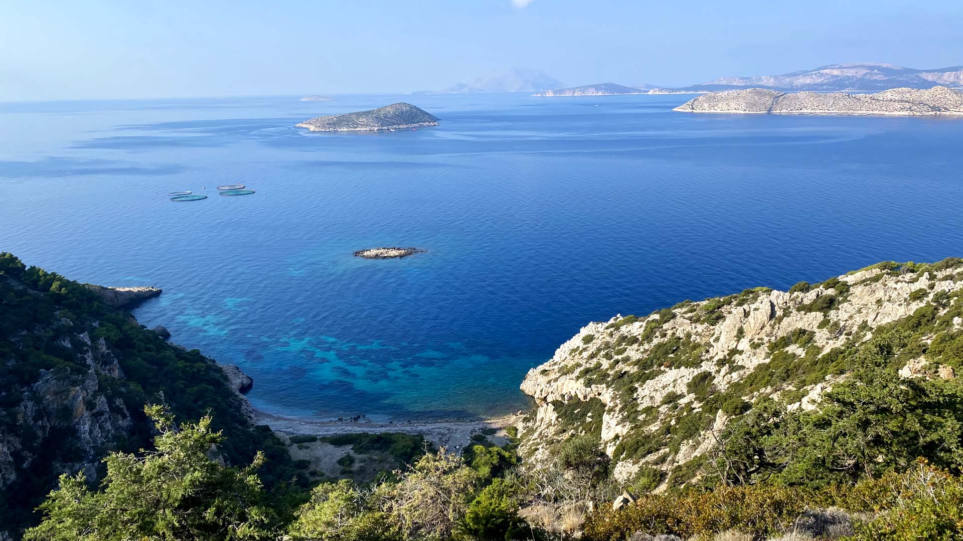 il trekking inizia nei pressi del paesino di Monolithos e percorre un piacevole sentiero nel bosco, fino ad una grotta nascosta nella montagna, chiamata Limeri. Passiamo poi dalla chiesetta di Ag. Ioannis, sulla cima della seconda montagna dell'isola, il monte Akramitis: tutta l'area è inclusa nella rete europea di habitat Natura 2000, protetta come monumento della natura. Qui il verde incontra il blu Egeo. Sosta per il pranzo in una tipica taverna, proseguiamo in bus fino alle rovine del castello di Monolithos, costruito su un monolito (da qui il nome) alto 236 metri.