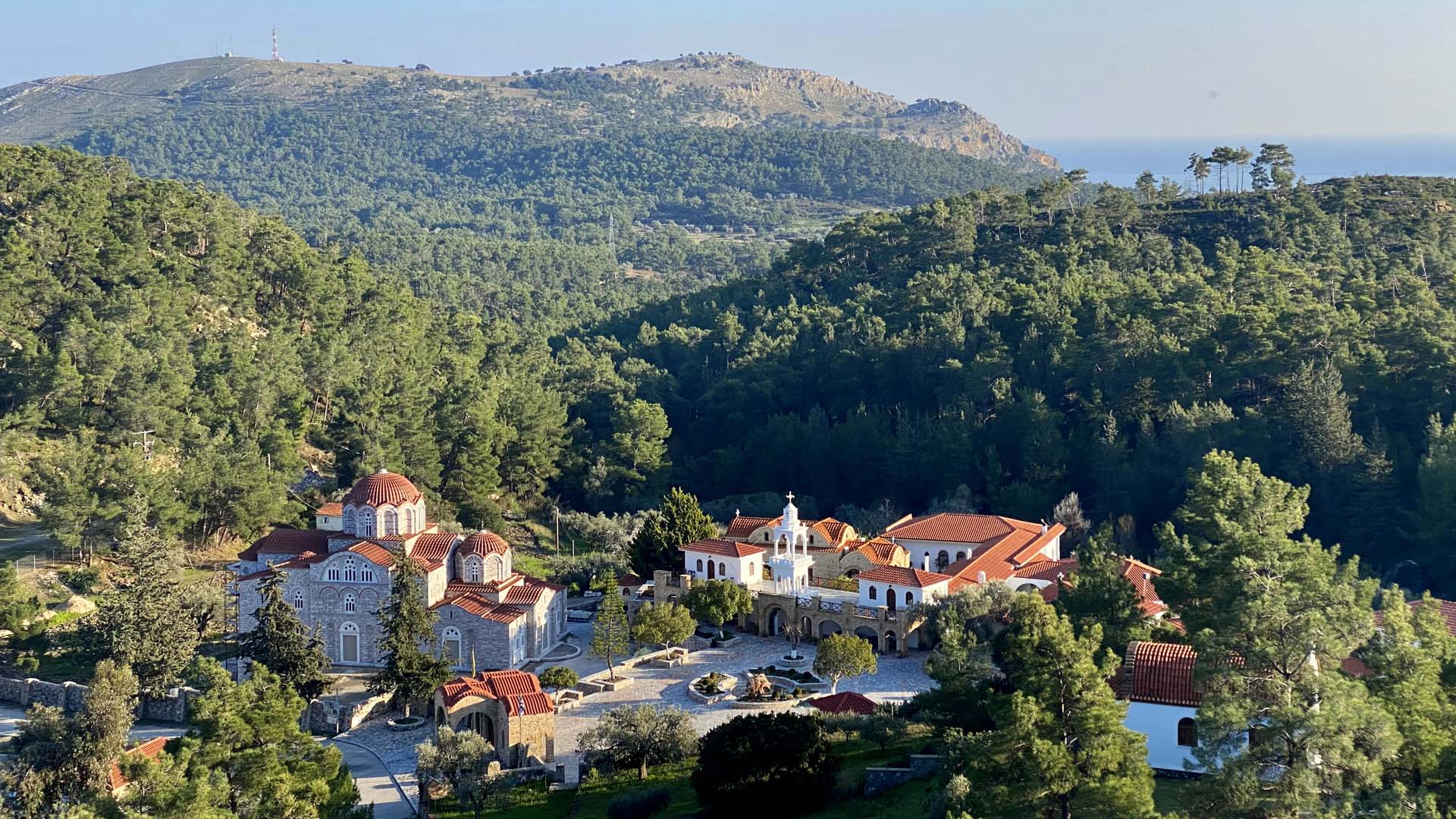 ci addentriamo nel cuore dell'isola, tra cipressi e pini di Aleppo. Partenza dal paesino di Salakos, dove imbocchiamo un'antica mulattiera fino ad una piccola cappella sulla roccia. Proseguiamo fino alla cima del Profeta Elia, la terza montagna dell'isola con i suoi 798 metri. Incontreremo due hotel costruiti in epoca dominio italiano, nonché la villa dell'ex governatore di Rodi, Cesare Maria De Vecchi. Pranzo al sacco fornito dall'hotel.