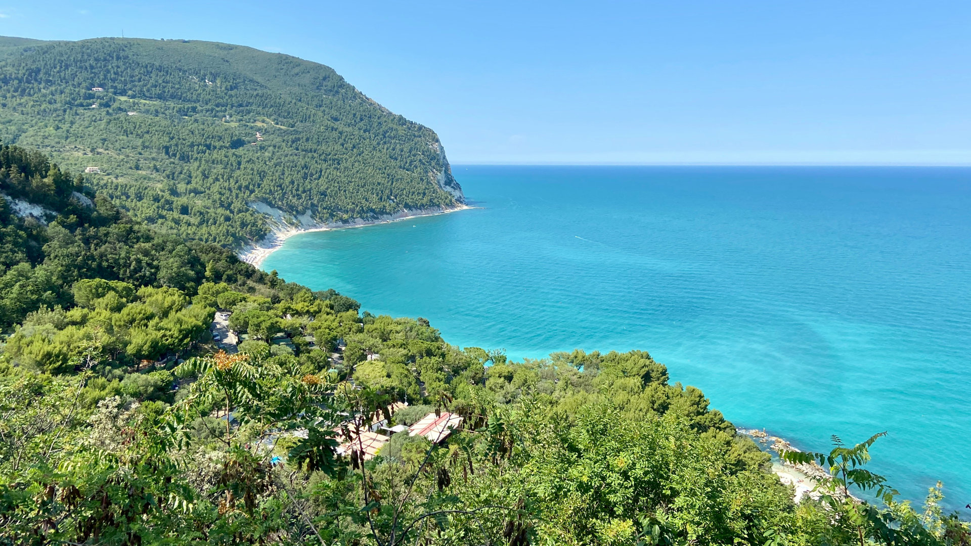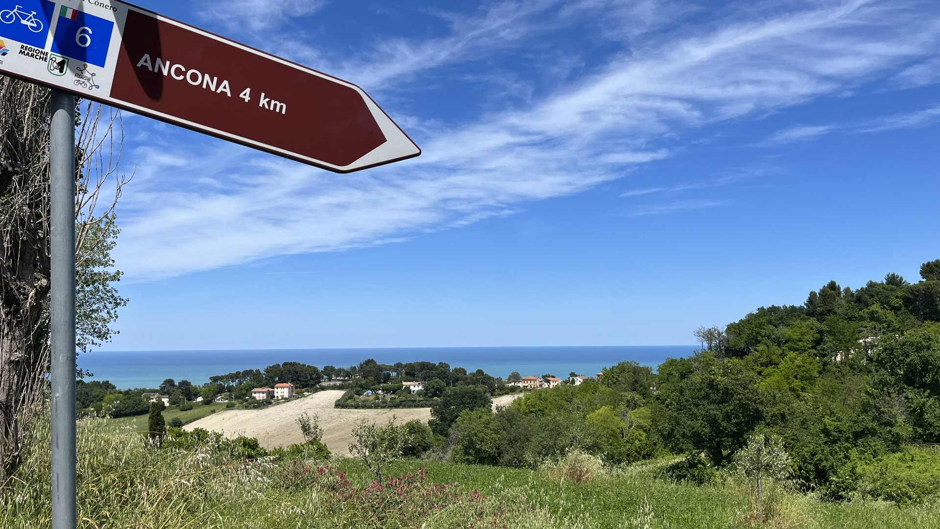 Da Pesaro seguiamo la costa adriatica fino ad Ancona, dove inizia uno dei tratti più iconici del cicloturismo italiano: la Ciclabile del Conero. Pedaliamo sospesi tra mare e falesie, immersi nei profumi della macchia mediterranea. Sirolo e Numana sono tappe da cartolina, tra borghi bianchi e acque turchesi. L’arrivo a Porto Recanati chiude la giornata con il mare davanti e l’atmosfera rilassata delle sere d’estate. Una tappa simbolo per chi sogna l’Adriatico più bello.