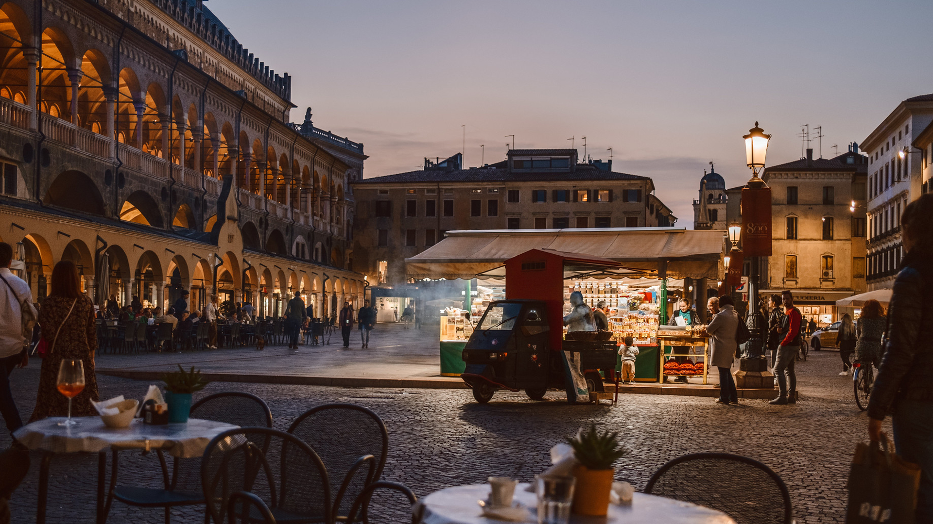 Entriamo nel clou del nostro weekend a Padova immergendoci poi nel mercato cittadino, all'ombra del Palazzo della Ragione, tra Piazza della Frutta e Piazza delle Erbe, assaggiando i tipici tramezzini e folpetti.