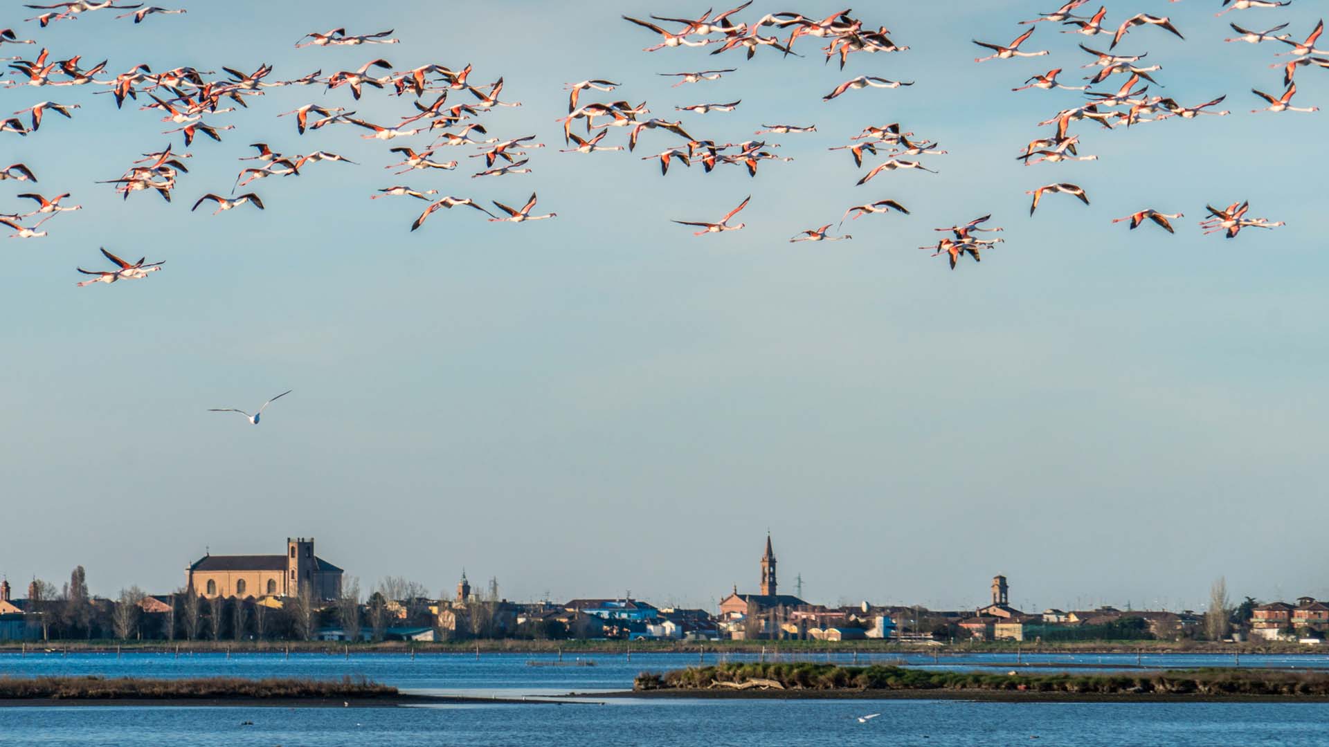 Domingo flamingo! Ci svegliamo prestino, pronti a percorrere qualche altro chilometro tra la natura lagunare che si risveglia. Montiamo in sella e raggiungiamo il nostro imbarco: salpiamo insieme per un’escursione in barca da cui esploreremo, rilassati, le meraviglie di questo territorio. Ci verranno spiegate le interessanti e misteriose dinamiche naturali che rendono questo ambiente unico nel suo genere, passando dalla flora e la fauna locale all'interazione umana con queste. Una volta scesi pranziamo con vista Salina e finiamo il nostro giro ciclabile alle Valli di Comacchio facendo ritorno in città, dove riconsegniamo le bici e…alla prossima avventura!