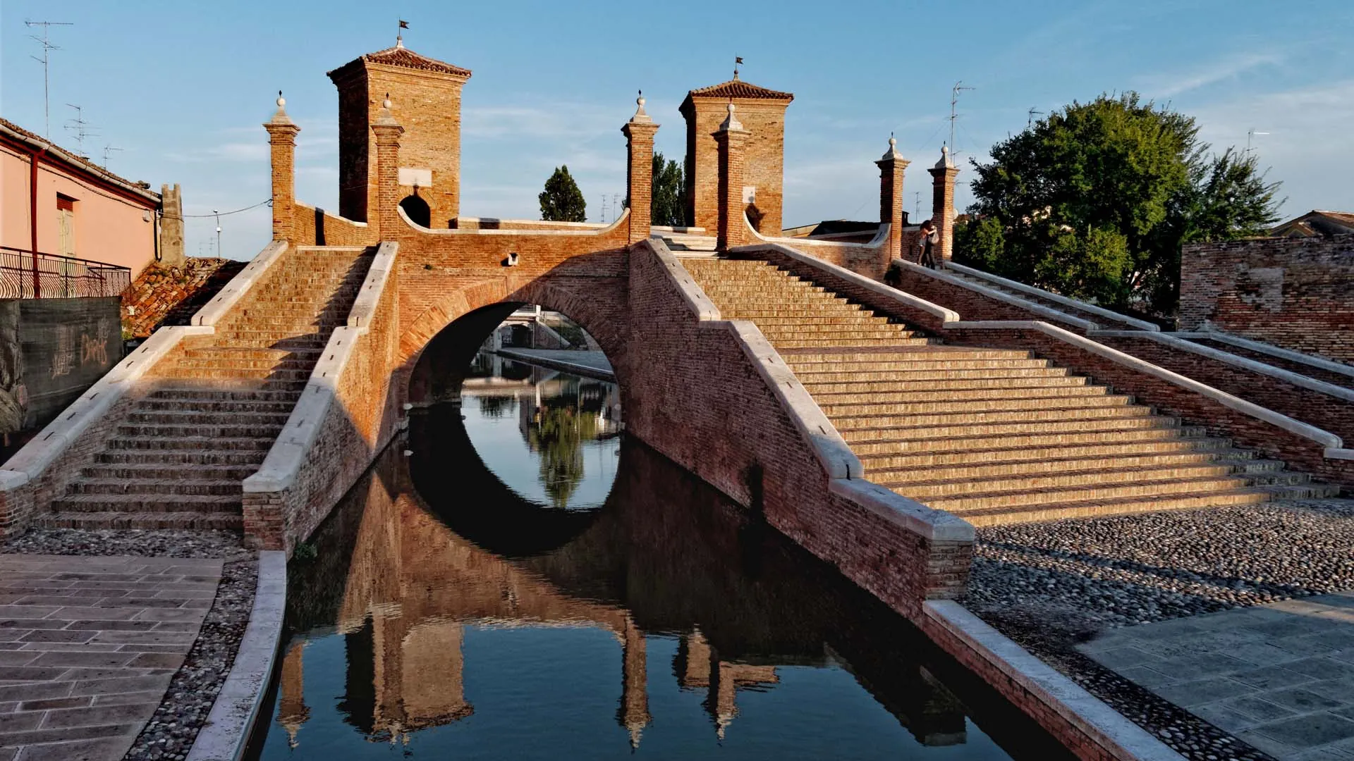 Raccogliamo energie e biciclette e partiamo per l’Anello delle Valli di Comacchio: un itinerario che percorre tutto il perimetro della laguna di Comacchio su argini e strade sterrate. Passiamo per casoni in mezzo alle acque e pedaliamo sull’Argine Agosta, antico tracciato di epoca romana che collegava Ravenna ad Adria. Lo percorriamo quasi tutto e giungiamo all'Agriturismo Prato Pozzo, dove potremmo pranzare con specialità della zona. Occhi aperti: qui è dove avvengono i migliori avvistamenti di fenicotteri rosa del Po! Pedaliamo tra le acque sull'Argine degli Angeli, passata la stazione di pesca di anguille di Bellocchio per poi sfociare dritti sulla costa, prima a Lido di Spina e poi alla famosa Lido degli Estensi. Forse abbiamo giusto il tempo di affondare i piedi nella morbida sabbia, ma poi subito a Porto Garibaldi con un traghetto ciclopedonale, per proseguire poi con una ciclabile fino al centro di Comacchio.